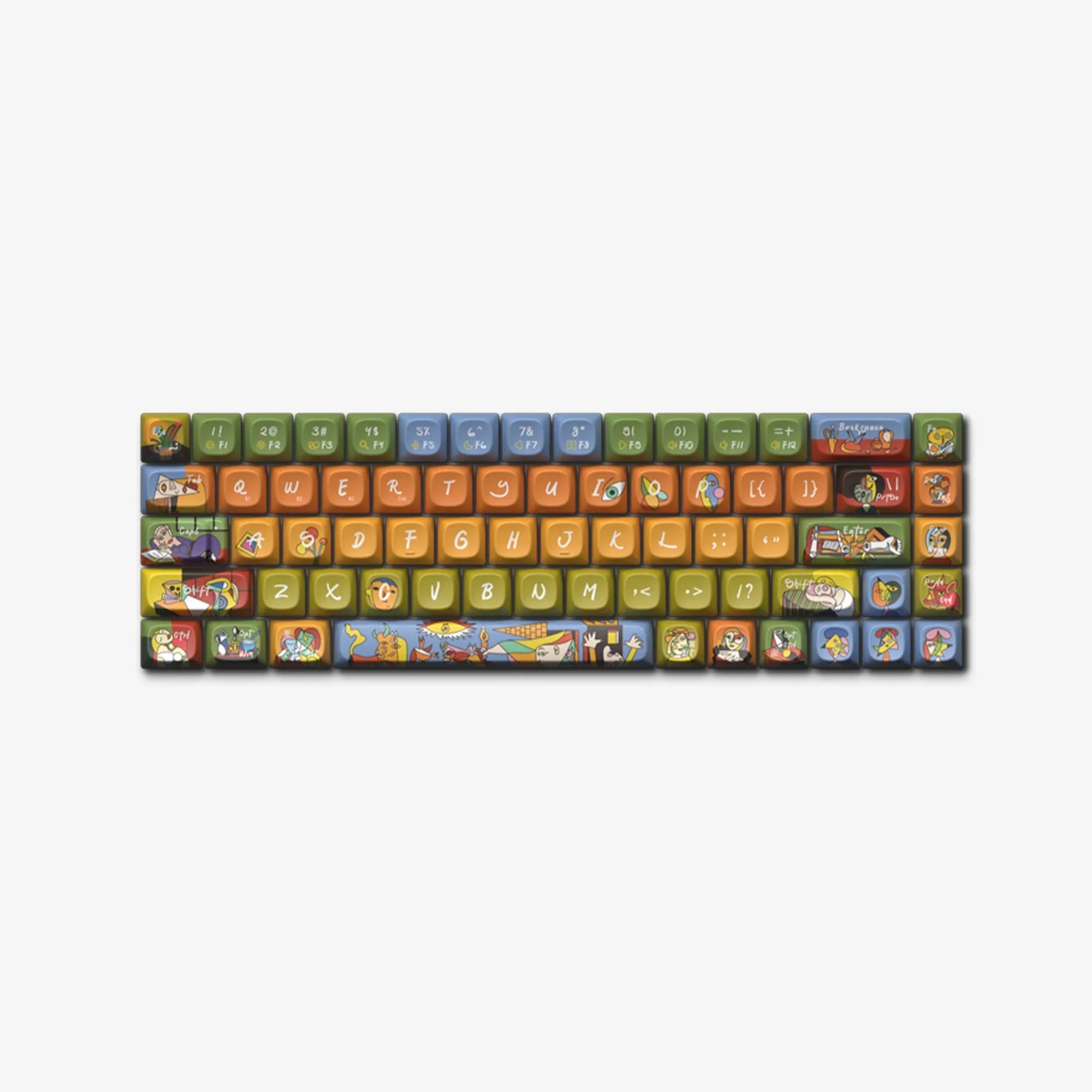 Dive into Picasso's revolutionary art with the set of Picasso's Gallery Keycaps, inspired by his Synthetic Cubist style. The set of keycaps celebrates his defiance of conventional forms, blending rational abstraction with geometric compositions. Experience a dynamic visual journey as these keycaps reconfigure objects using space, color, and line to create vibrant tension. Transform your keyboard into a gallery of Picasso's diverse styles and embrace the creativity of cubist art.